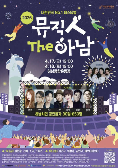 [뉴스힘=박노신 기자] 하남의 봄을 깨우는 압도적 선율과 시민의 열정이 하나로 어우러지는 ‘2026 하남뮤직페스티벌 '뮤직 人 The 하남'’이 오는 4월 17일과 18일 양일간 하남종합운동장에서 화려한 막을 올린다.