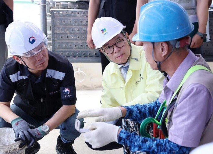 | ▲ 지난해 9월 정원오 성동구청장(가운데)이 김영훈 고용노동부 장관(좌측)과 함께 성동구의 건설 현장을 합동점검 중인 모습 |