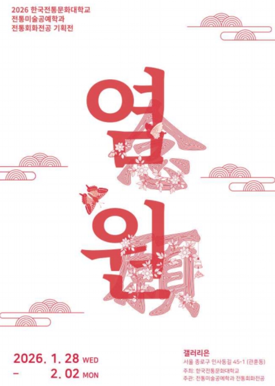 [뉴스힘=박노신 기자] 국가유산청 한국전통문화대학교는 오는 1월 28일부터 2월 2일까지 갤러리 은(서울 종로구)에서 전통미술공예학과 전통회화전공 재학생 42명과 교수진이 전통기법과 재료를 바탕으로 제작한 전통회화 작품들을 선보이는 기획전시 '염원(念願)'을 개최한다.