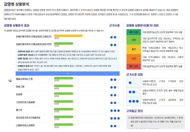 [뉴스힘=박노신 기자] 질병관리청은 4월 30일부터 해외에서 발생하는 15종 이상 감염병의 국내 유입 및 확산 위험에 대한 상황분석 결과를 감염병 누리집을 통해 정기적으로 공개하고, 상황분석(평가)을 시각화하여 누구나 쉽게 확인할 수 있도록 제공한다.