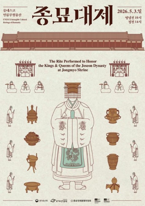 [뉴스힘=박노신 기자] 국가유산청은 산하 국가유산진흥원, 종묘대제봉행위원회와 오는 5월 3일 오후 2시 종묘(서울 종로구)에서 '2026년 종묘대제'를 봉행한다.