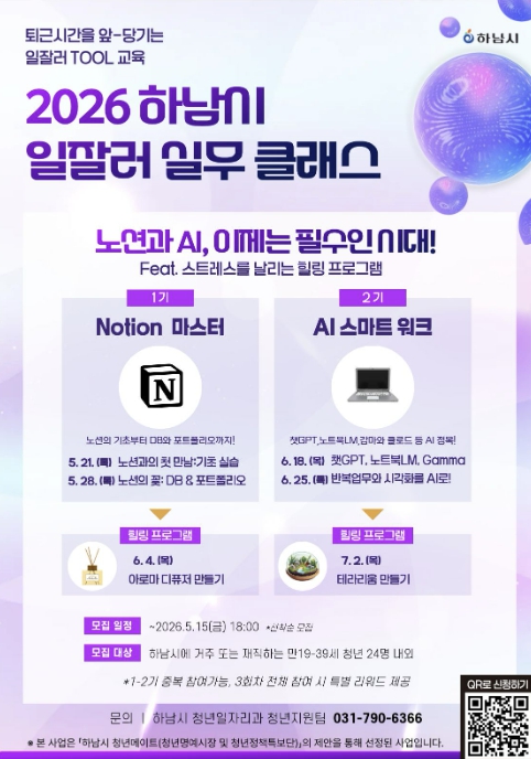 [뉴스힘=박노신 기자] 하남시는 관내 청년들이 현장에서 바로 활용할 수 있는 실무 역량을 키우고 또래 청년 간 교류 기회를 확대하기 위해 오는 5월부터 ‘2026년 하남시 일잘러 실무클래스’를 운영하고 1기와 2기 참여자를 모집한다고 밝혔다.