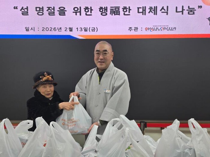 [뉴스힘=박노신 기자] 대한불교조계종사회복지재단이 운영하는 안성시노인복지관은 설 명절 연휴를 맞아 2월 13일 무료급식 이용 어르신들의 결식 예방과 안정적인 식생활 지원을 위해 ‘2026년 설 명절을 위한 행福한 대체식 나눔’을 진행했다.
