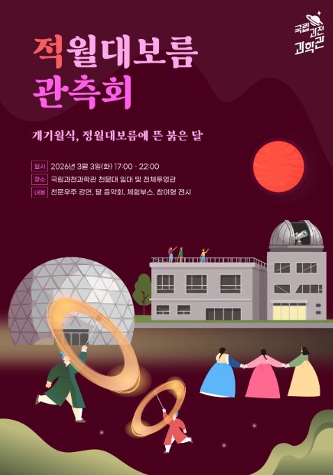 [뉴스힘=박노신 기자] 과학기술정보통신부 국립과천과학관은 정월대보름인 2026년 3월 3일, 천문대와 천체투영관 일대에서 개기월식 특별 관측회를 연다.