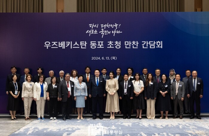 [뉴스힘=박노신 기자] 우즈베키스탄을 국빈방문 중인 윤석열 대통령은 김건희 여사와 함께 현지시각 지난 6월 13일 저녁 우즈베키스탄 타슈켄트에서 현지 동포 약 140명을 초청해 만찬을 겸한 간담회를 가졌다.