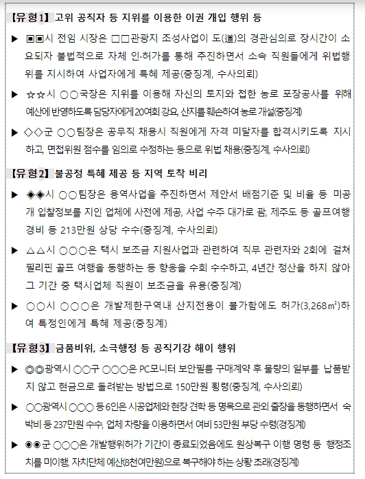 | ▲ 「공직부패 100일 특별감찰」유형별 주요 적발사례 |