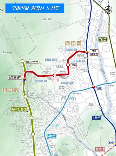 한편 시는 우이신설 연장선이 도시철도가 닿지 않던 동북권 교통 소외 지역의 불편을 해소하고, 다시 ‘강북 전성시대’를 이끄는 균형발전의 기반을 마련할 것으로 기대하고 있다. 시는 지난해 강북권(동북권·서북권)의 노후 주거지, 상업지역에 대한 규제 완화와 파격적인 인센티브 부여로 개발을 활성화하고, 대규모 유휴부지를 첨단산업과 일자리 창출 거점으로 조성하는 강북권 대개조 의지를 밝힌 바 있다.