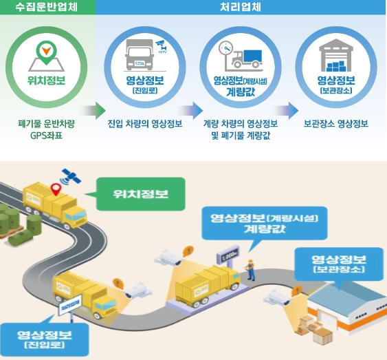 폐기물 수집‧운반자로부터 폐기물을 인수받아 처분 또는 재활용하는 처리업자는 폐기물 진입로 및 계량시설에 영상정보처리기기(CCTV)를 설치하고 차량 영상정보, 반입한 폐기물의 계량값, 폐기물 보관장소의 영상정보를 폐기물처리 현장정보 관리시스템에 실시간으로 전송해야 한다.
