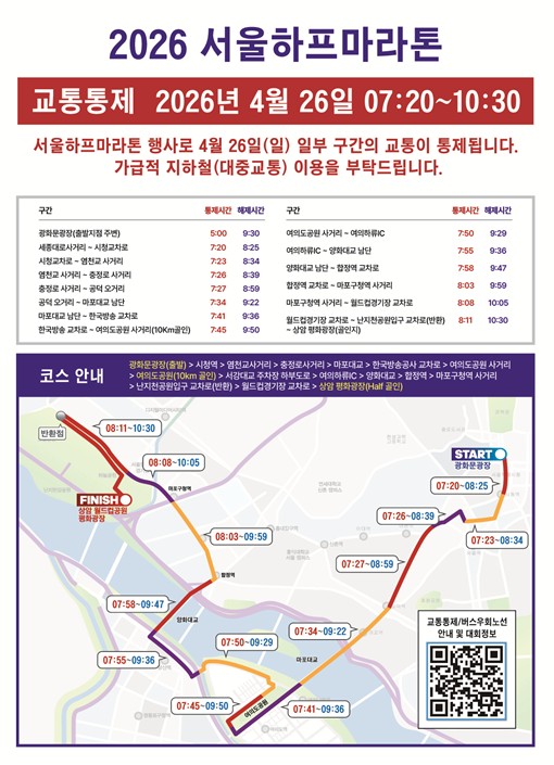 | ▲ '2026 서울하프마라톤' 교통통제 안내문 |