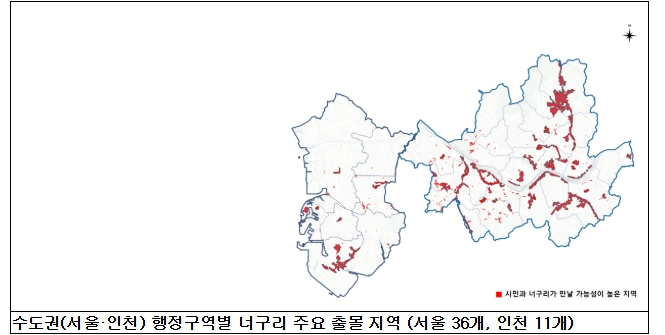 | ▲ 수도권(서울·인천) 행정구역별 주요 출몰 지역 지도 |