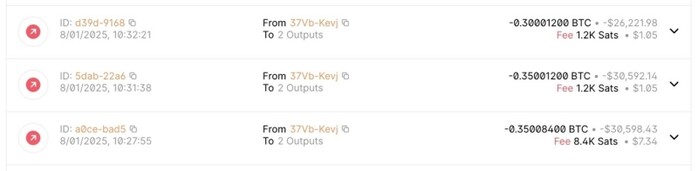 | ▲ 0.35 + 0.35 + 0.3 BTC 총 1비트코인을 출금해간 자료 |