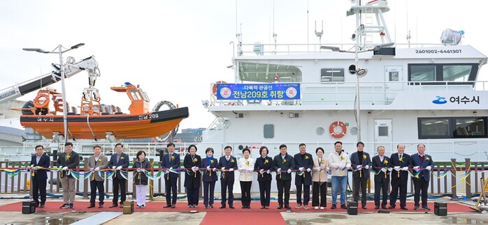 [뉴스힘=박노신 기자] 여수시는 지난 2월 27일 여수 엑스포항 일원에서 수산자원 보호와 어업질서확립을 위해 건조한 신규 다목적 관공선(어업지도선) 전남 209호의 취항식을 개최했다고 밝혔다.