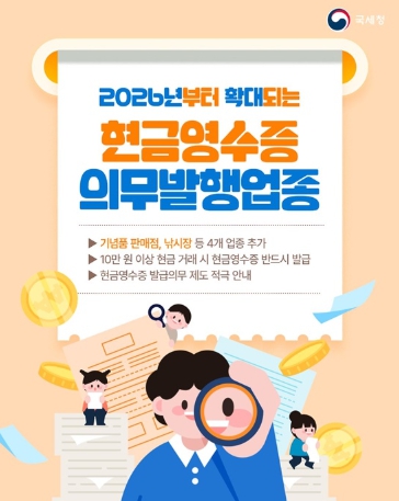 [뉴스힘=박노신 기자] 2026년부터 확대되는 현금영수증 의무발행업종