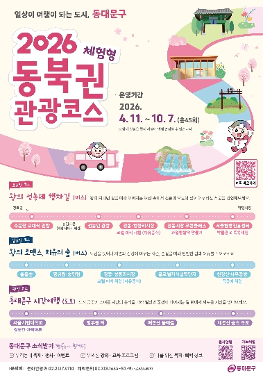 [뉴스힘=박노신 기자] 서울 동대문구는 지역의 역사·문화·체험 자원을 연계한 ‘2026 동대문구 동북권 체험형 관광 코스’를 4월 11일부터 10월 7일까지 운영한다고 밝혔다.