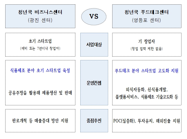 | ▲ 청년쿡 센터별 특징 |