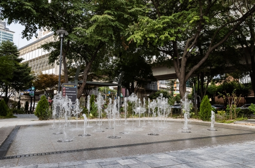 [뉴스힘=박노신 기자] 광진구가 무더위에 지친 구민에게 휴식 공간을 제공하고자, 자양역 인근 약초원소공원(자양동 553-22)에 바닥분수를 설치했다.