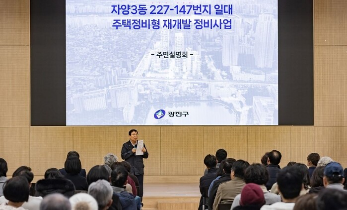 [뉴스힘=박노신 기자] 광진구는 지난 7일 광진구청 대강당에서 자양동 227-147번지 일대 재개발사업 정비계획(안) 주민설명회를 개최했다.