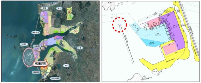| ▲ 새만금항 신항 방파제 (연장) 축조공사 위치도 및 계획평면도 |