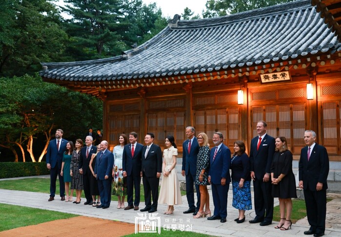 | ▲ 9월 2일 윤석열 대통령 부부는 한국을 방문 중인 「빌 해거티(Bill Hagerty)」 상원의원을 비롯한 美 연방 상원의원 7명과 그 배우자들을 청와대 상춘재에 초청하여 만찬을 갖고, 한미동맹 발전 방안에 대해 의견을 교환했다. |