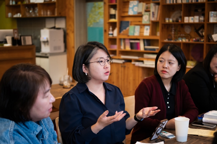 [뉴스힘=박노신 기자] 용혜인 국회의원(기본소득당 안산시지역위원장)이 17일 오전 안산시 사동 복합문화공간 마을숲 사회적협동조합에서 사동 주민들과 주민자치 활성화를 주제로 간담회를 가졌다.