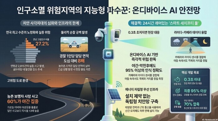 현재 지역 치안 인프라는 CCTV, 112·119, 마을방송, 재난방송 등 시스템이 개별 운영돼 긴급상황 발생 시 대응 지연 문제가 지속되고 있다. 특히 농촌·산간 지역은 통신 환경과 인프라 한계로 신속 대응이 어려운 구조다.