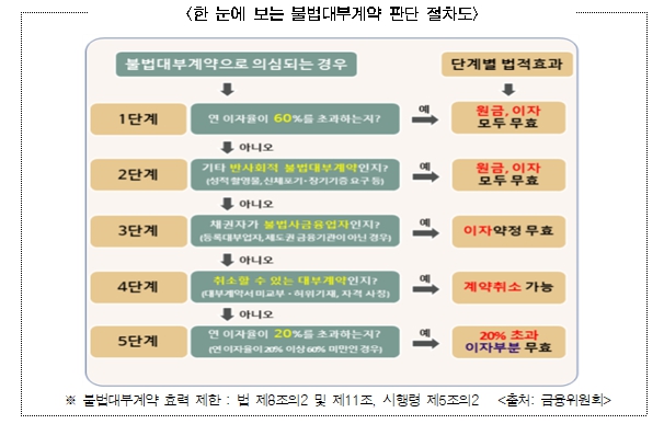특히 서울시는 연 60%를 초과하는 고금리 대출은 법적으로 무효이며, 이러한 계약에 대해서는 원금과 이자를 모두 갚을 필요가 없다는 점을 시민들에게 강조했다.