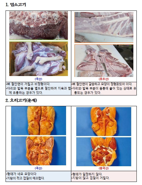 | ▲ 염소고기, 오리고기(훈제) 원산지 식별 정보 |