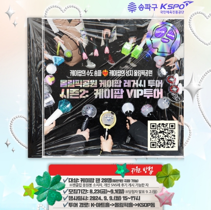 케이팝에 진심인 송파구가 특별히 준비한 이번 이벤트는 팬 20명이 대상이다. 송파구청과 국민체육진흥공단 SNS에서 지원자격 등 자세한 사항을 확인하고, 오는 9월 1일까지 온라인으로 신청하면 된다.