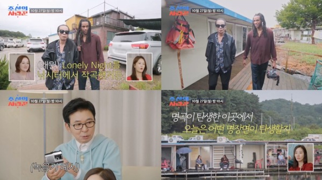 오는 27일(월) 방송될 ‘조선의 사랑꾼’ 선공개 영상에서는 마침내 딸과 한국에서 함께하게 된 김태원이 '뉴욕 사위' 데빈과 단둘이 낚시터에서 단란한 시간을 가진다. 김태원은 "내가 95년도에 박완규를 데리고 낚시터에 다녔으니까...'Lonely Night'를 낚시터에서 작곡했거든"이라며 명곡 탄생의 비밀을 밝혔다.