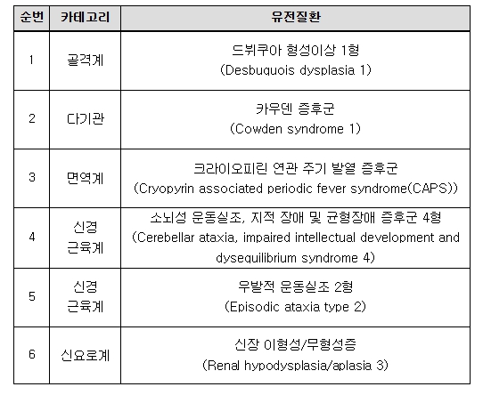 | ▲ 배아‧태아 대상 유전자검사 신규 질환 목록(6개) |