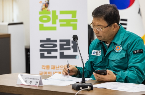 | ▲ 지난해 11월 진행한 재난대응 안전한국훈련에서 회의 중인 김경호 광진구청장 |
