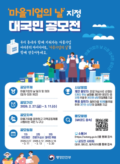이번 공모의 주제는 ‘마을기업의 날(날짜와 의미)’이며, 2월 27일부터 3월 11일까지 진행한다.