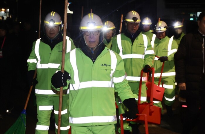 [뉴스힘=박노신 기자] 김민석 국무총리는 12월 26일 6시 30분경, 서울특별시 관악구 서원동 환경공무관 업무공간을 방문해 직접 거리를 청소하고 담소를 나누며 격려하는 시간을 가졌다.