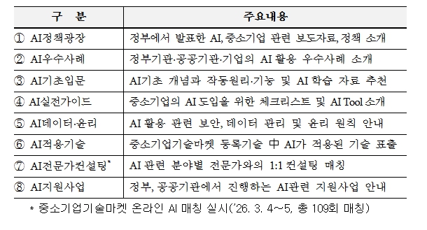 | ▲ 중소기업기술마켓 AI 전용관 주요기능 |