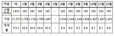 | ▲ 2026년도 입영대상 카투사 월별 지원 경쟁률 |