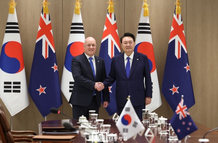 [뉴스힘=박노신 기자] 윤석열 대통령은 9월 4일 공식방한 중인 '크리스토퍼 럭슨(Christopher Luxon)' 뉴질랜드 총리와 정상회담을 갖고, 양국 간 협력 증진 방안과 지역 및 국제 정세에 대해 폭넓은 의견을 교환했다.