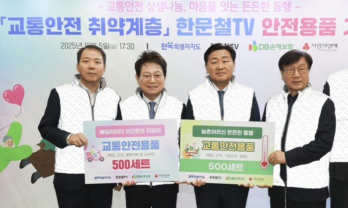 [뉴스힘=박노신 기자] 전북특별자치도가 5일 도청에서 한문철TV와 DB손해보험과 함께 교통안전 취약계층을 위한 안전물품 기탁식을 가졌다.