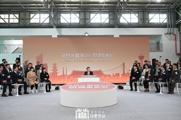 | ▲ 2월 26일 윤석열 대통령은 충남 서산비행장에서 ‘미래산업으로 민생 활력 넘치는 충남’을 주제로 열다섯 번째 「국민과 함께하는 민생토론회」를 개최했다. |