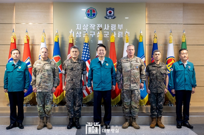 대통령은 사령부 도착 후 방명록에 “전장의 중심, 통일의 선봉! 지상작전사령부 장병 여러분이 자랑스럽고 든든합니다”라고 작성하며 군에 대한 강력한 믿음을 표명했다. 이어 손식 지상작전사령관, 폴 라캐머라(Paul LaCamera) 한미연합군사령관, 강신철 한미연합군부사령관, 크리스토퍼 라네브(Christopher LaNeve) 미8군사령관 등 주요 직위자들과 기념사진을 촬영했다.